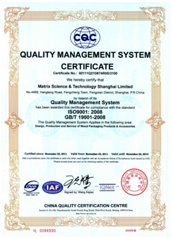 · Matrix Science & Technology Shanghai Limited completed ISO9001:2008